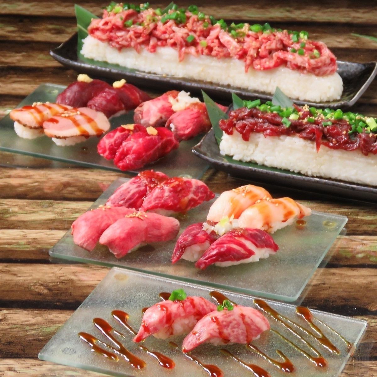 本格肉寿司を和牛から馬肉、鴨肉まで幅広く全20種類ご用意しております☆他店舗で培った知識を存分に自己アレンジして最高の肉寿司を提供させて頂きます☆